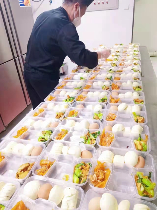 清扫客房的3位工作人员,每日清扫客房129间,对酒店公共区域和客房进行无死角的消毒消杀,为入住客人和抗疫一线人员提供安全、整洁的住宿环境;厨房3位工作人员,每日准备营养早餐260余份,克服疫情时期物资供应的重重困难,对每一天的早餐精心搭配,让入住酒店的“大白”们,能够补足能量,奔赴一线。 “你守护城市,我们守护你”,坚持为客人提供品质服务和法式浪漫的酒店团队,在艰难的时刻,用异常坚毅的力量,坚守在岗位上,奔波在酒店,为滞留客人提供家般温暖,为抗疫逆行者提供优质的保障。
