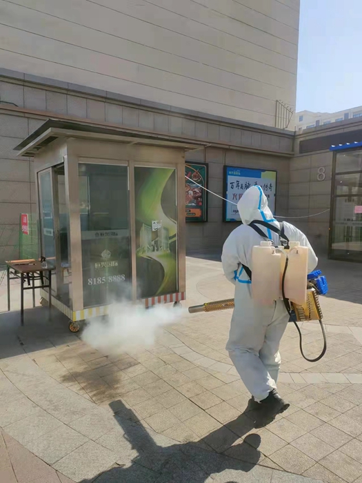 物业中心紧急召开疫情防控专题会议,根据会议要求及防疫应急预案分工,第一时间对一线应急值班岗位进行排班,对家庭条件允许住宿的秩序员进行召回在项目内临时居住,确保疫情防控期间岗位人员需求;总经办紧急购置防疫物资发放到各岗位,确保执勤人员防疫安全,每日对各值班岗位加大消杀频次,确保项目防疫工作稳定开展;在疫情扩散初期,对各楼宇进行24小时全封闭式管理,严格执行大堂24小时防疫值班。积极组织巡查人员穿戴防护设施、持执法记录仪,对办公楼内企业人员文明劝离,确保每天对写字楼进行4次以上安全巡查,消除安全隐患;接政府防疫要求,重点对六、七号回迁楼130余户居民防疫管控,为减少回迁楼住户接触风险,每户上门发放防疫管控出入证,及时封闭各单元门通往地下车库门;在各单元出入口张贴政府防疫要求通知,配合街道封闭回迁楼外围;在六七号楼中间保留单出口并加放防疫岗位,穿戴防护服执勤;对特殊保障外出人员进行扫码、测温登记,严格落实政府防疫部门工作要求防疫出入制度;积极组织一线防疫值班人员进行核酸自检自查,一经发现问题及时上报,积极配合街道防疫管控调度,全力配合街道搬运各项防疫物资;维护防疫部门到项目进行核酸检测期间现场秩序。
