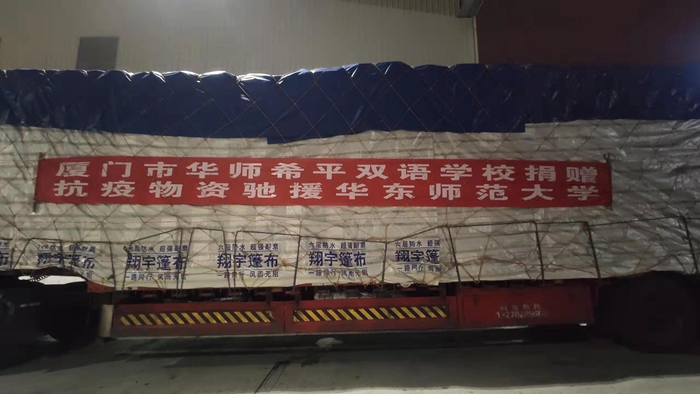 4月18日傍晚,厦门明升ms88集团携厦门市华师希平双语学校向华东师范大学捐赠的食品、饮料、衣服等抗疫物资运抵达上海,本批物资价值总额超100万元。