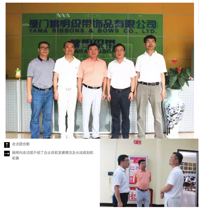 7月3日,厦门市工商联(总商会)主席(会长)柯希平、党组书记兼常务副主席陈永东、副主席邱加海、秘书长叶正辉走访副主席企业厦门姚明织带饰品有限公司、厦门市味友餐饮管理有限公司。