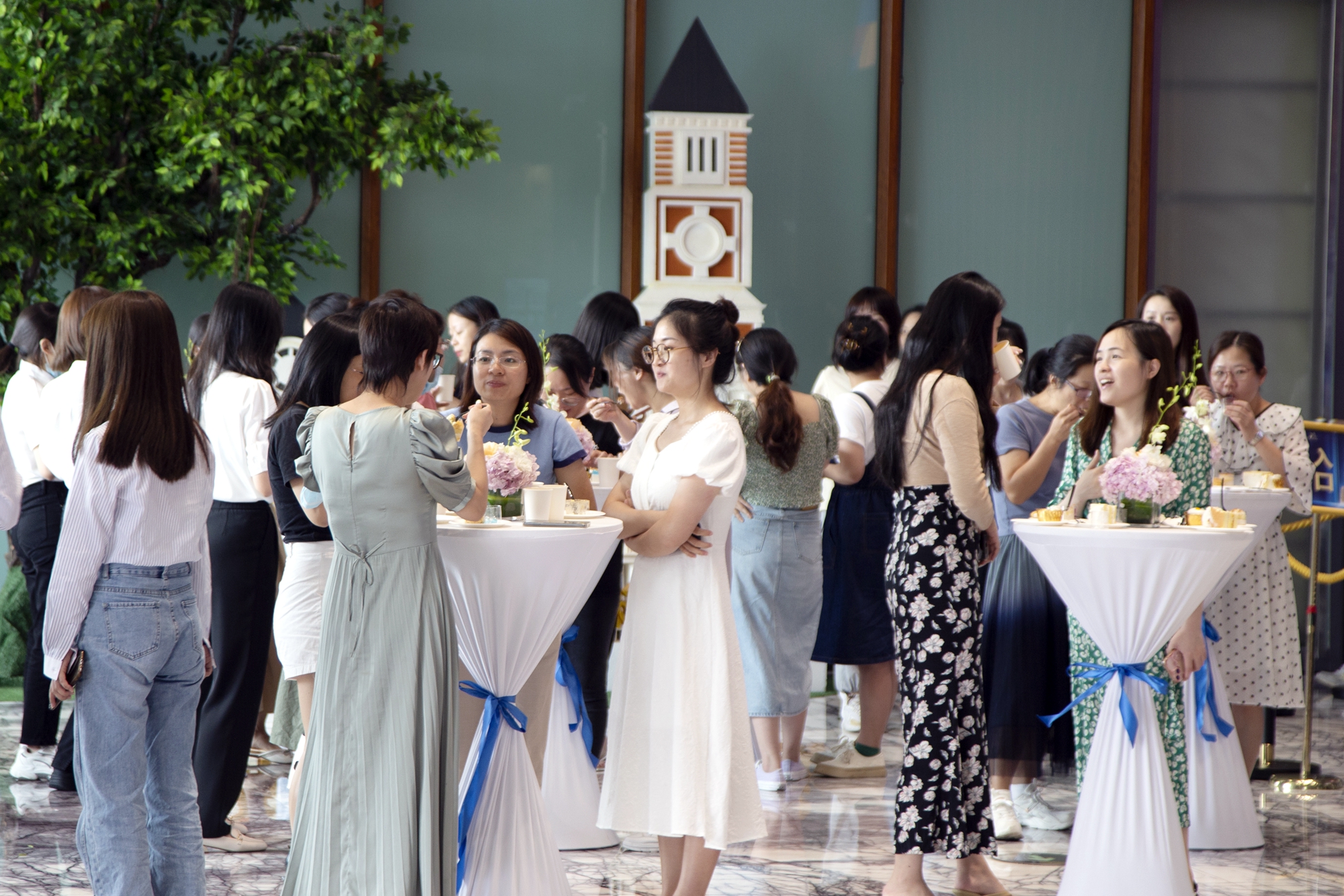 舞台前大家愉快的分享着蛋糕,大堂另一侧的下午茶时光也热闹上演。各式各样的美味茶歇,让大家在优雅的音乐中悉心品味美食,愉快交谈,暂别工作烦忧,尽情享受着这一轻松时刻。